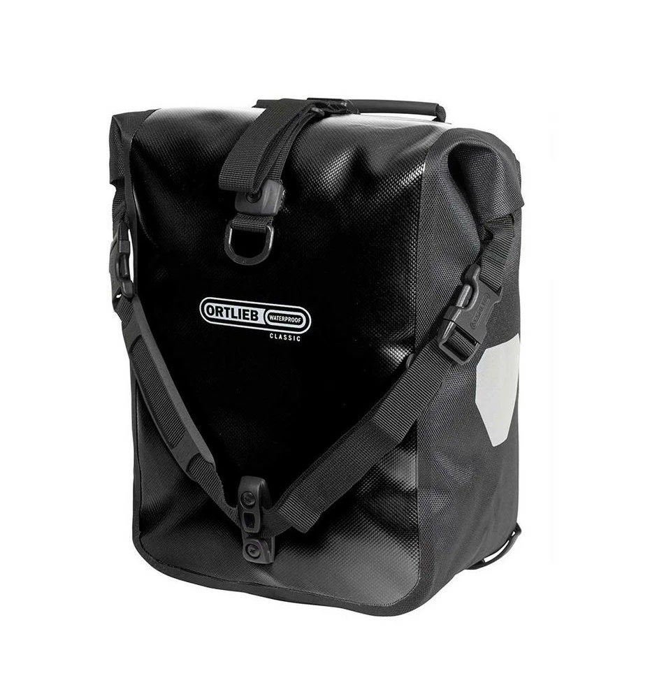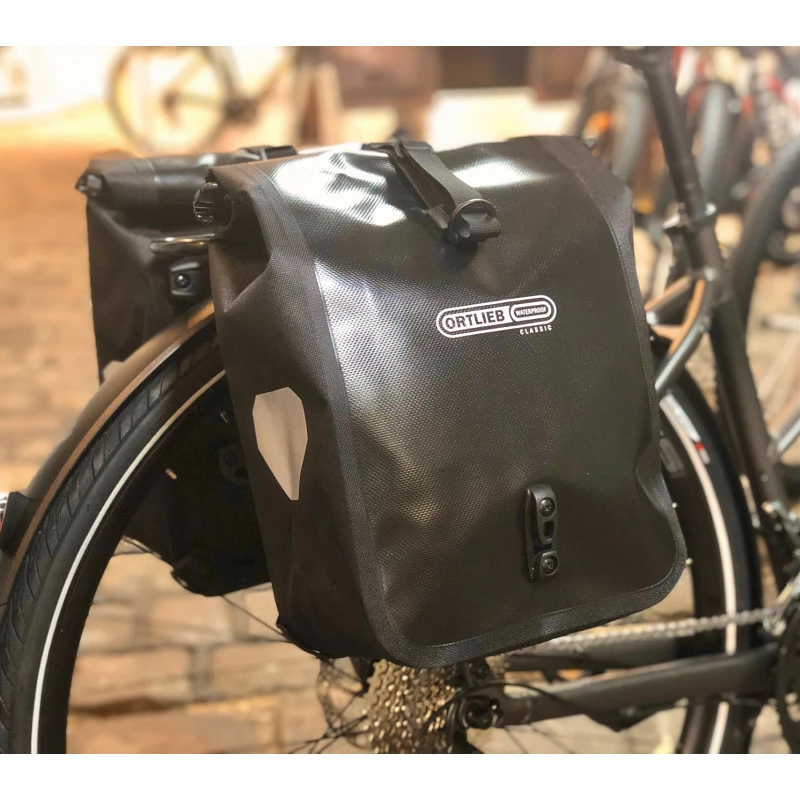 La paire de sacoches vĂ©lo Ortlieb Sport Roller Classic est fabriquĂ©e en toile de polyester rĂ©sistante et Ă©tanche. Les sacoches Ortlieb Sport Roller Classic dotĂ©es d’un systĂšme Quick-Lock 2.1 sont compatiblepour les porte-bagages «lowrider» de roue avant ou les portebagages arriĂšre, et peut ĂȘtre Ă©galement utilisĂ©e sur un vĂ©lo dâenfant. Son systĂšme Quick-Lock2.1 permet de lâaccrocher et de la dĂ©crocher rapidement et facilement du vĂ©lo.