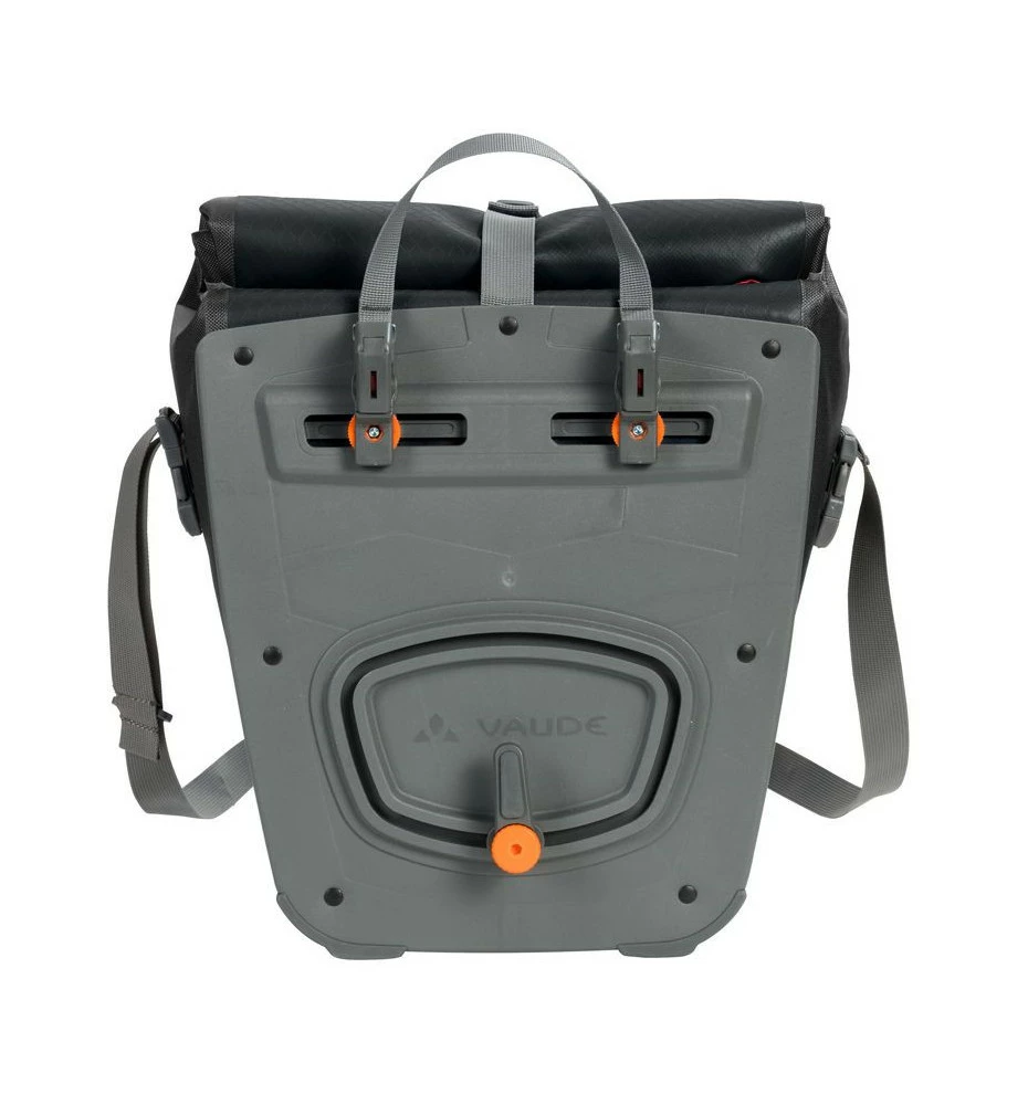 Vaude Aquafront paire de sacoches pour le vélo. Sacoche avant polyvalente Vaude entièrement étanche. Les sacoches Aqua Front possèdent une système de fermeture par enroulage qui garantie sa parfaite étanchéité. Grâce à la nouvelle construction symétrique du Hardback Pro, elle peut être installée des deux côtés de la roue.